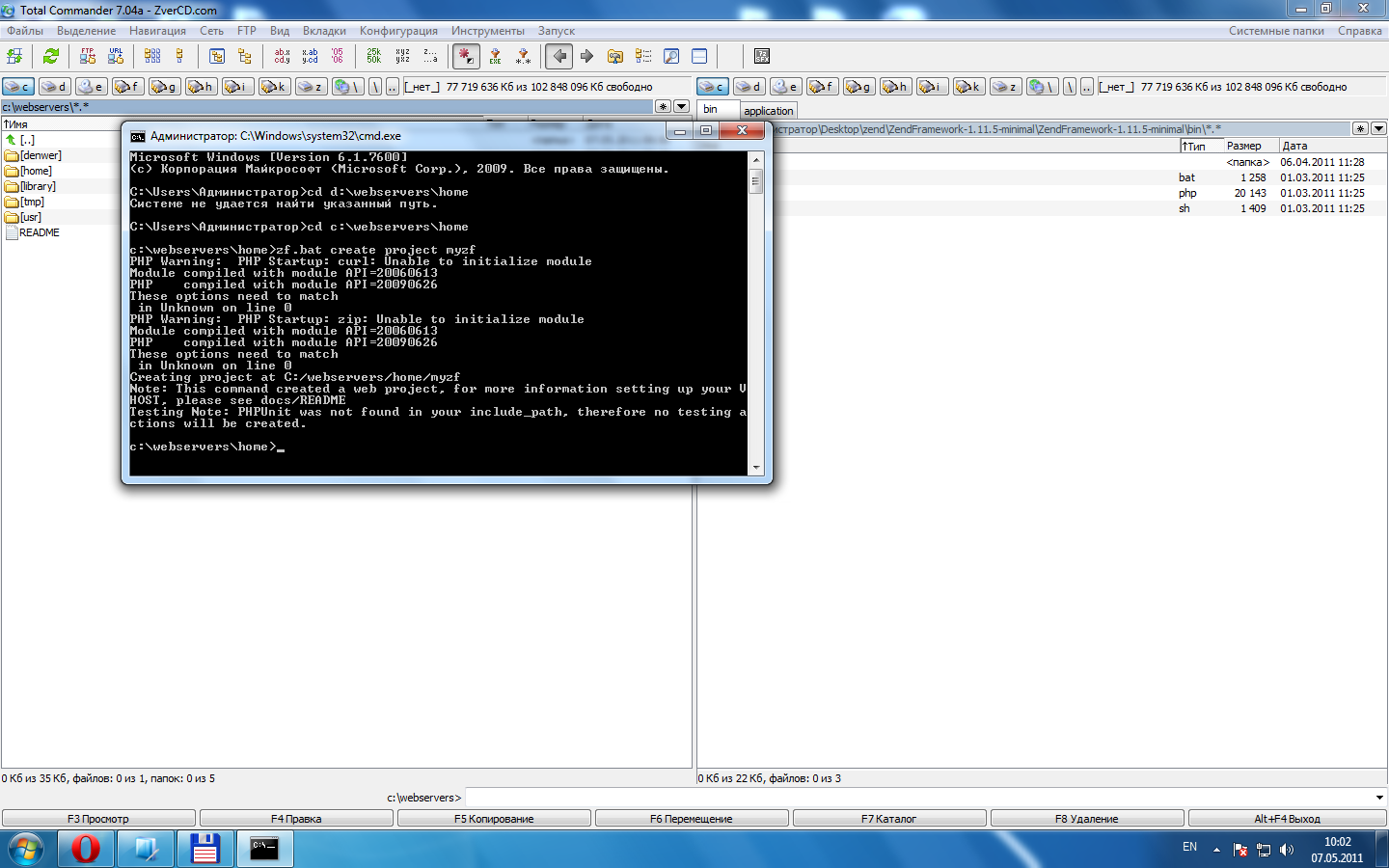 Скопировал категорию library в корневую директорию денвера, в php.ini указал пути к ним, и полный путь к php.exe