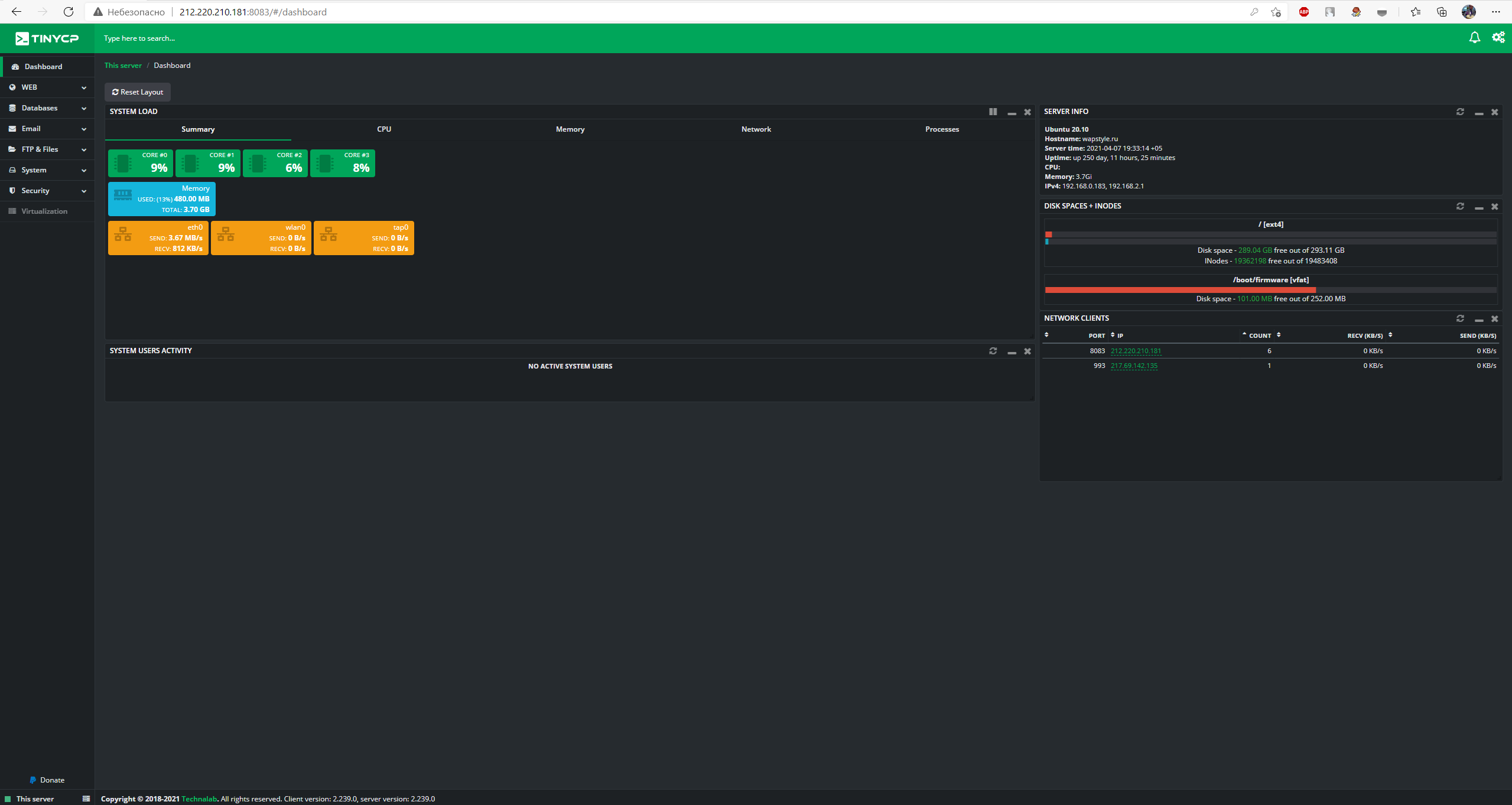 ну что сказать, использую панель tinycp и ubuntu 20.10 server
