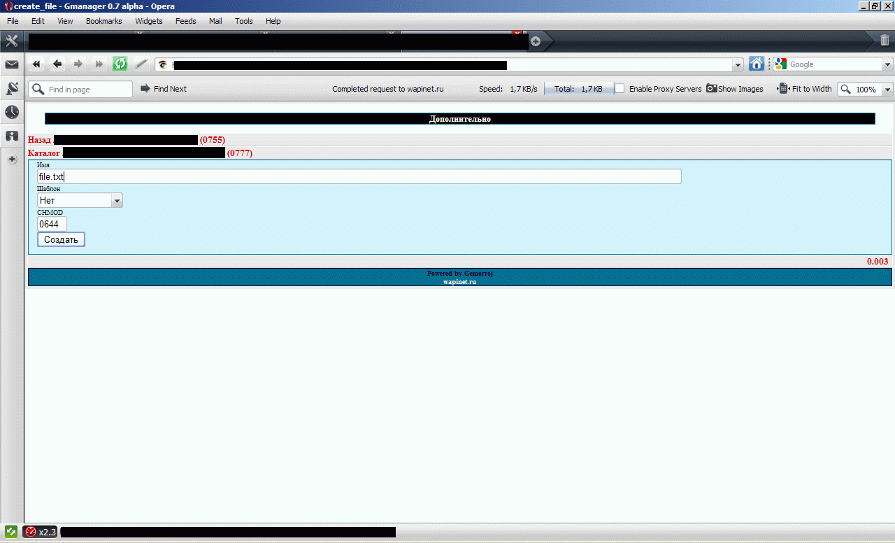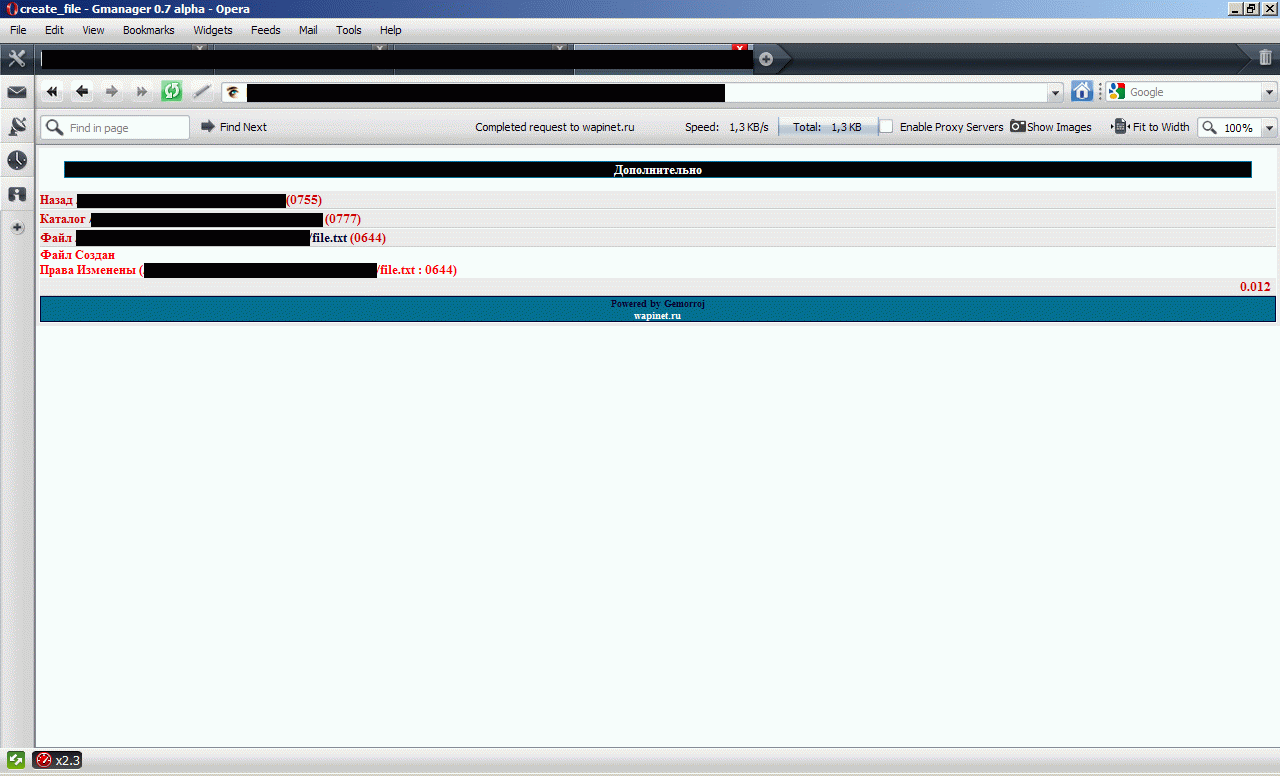 ставим цифру 1 в конфиге чтоб входить в скрипт с паролем и нифига не работает. Заходил и с оперы и оперы мини. Опера мини перегружает страницу а большая опера соединять не хочет. Пароль проверял неоднократно и логин тоже. Менеджер не плохой достаточно. Аффтар молодец однозначно. Но там необходима функция типа буфера. То есть как в фтп от панка "список". К примеру мне нужно запаковать 30 разных архивов и вложить в них один файл txt и приходится каждый раз загружать этот файл в папку. Это ладно если текст а если архив 500кб? Так же необходимо сохранение архива именно в той папке где находишься. Я понимаю что аффтар не обязан это делать,но тем не менее было бы отлично если все это было реализовано.